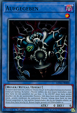 Du kannst diese Karte mit „Schwarze-Illusion-Ritual“ als Ritualbeschwörung beschwören. Einmal pro Spielzug: Du kannst 1 Monster wählen, das dein Gegner kontrolliert; rüste diese Karte mit dem gewählten Ziel aus (max. 1). Die ATK/DEF dieser Karte werden dieselben wie die des ausrüstenden Monsters. Falls diese Karte durch Kampf zerstört würde, zerstöre stattdessen das ausrüstende Monster. Solange diese Karte mit dem Monster ausgerüstet ist, fügt jeglicher Kampfschaden, den du aus Kämpfen mit dieser Karte erhältst, deinem Gegner genauso viel Effektschaden zu.