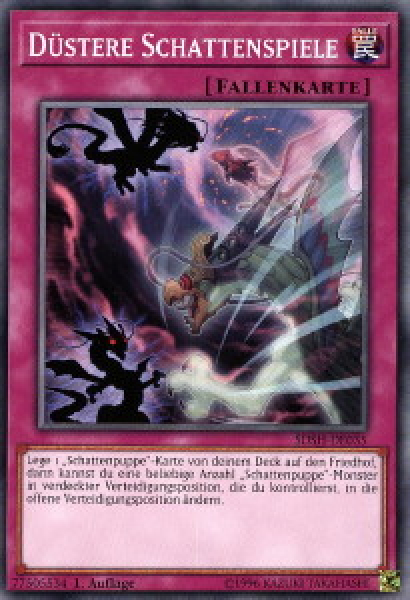 Lege 1 „Schattenpuppe“-Karte von deinem Deck auf den Friedhof, dann kannst du eine beliebige Anzahl „Schattenpuppe“-Monster in verdeckter Verteidigungsposition, die du kontrollierst, in die offene Verteidigungsposition ändern.