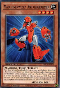 Wenn diese Karte als Normalbeschwörung beschworen wird: Du kannst deiner Hand 1 „Maschinenwesen“-Monster von deinem Deck hinzufügen, außer „Maschinenwesen Antriebsrahmen“. Einmal pro Spielzug kannst du entweder: 1 Maschine-Monster wählen, das du kontrollierst; rüste das gewählte Ziel mit dieser Karte aus, ODER: Diese Karte ausklinken und als Spezialbeschwörung beschwören. Falls das ausgerüstete Monster durch Kampf oder einen Karteneffekt zerstört würde, zerstöre stattdessen diese Karte.