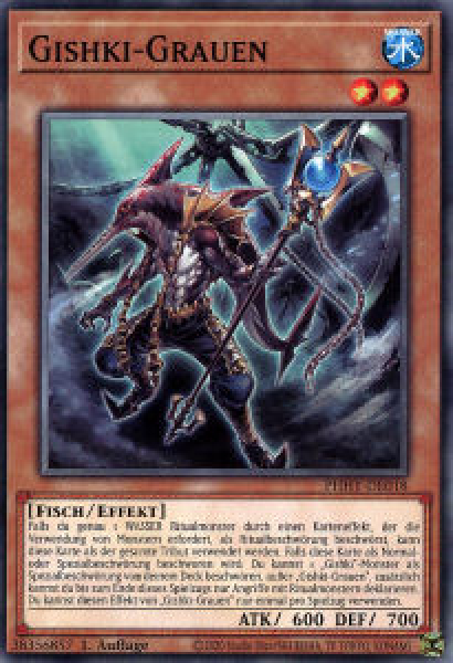Wenn du genau 1 WASSER - Ritualmonster mit einem Karteneffekt als Ritualbeschwörung beschwörst, der die Verwendung von Monstern erfordert , kann diese Karte als der gesamte Tribut verwendet werden. Falls diese Karte als Normal- oder Spezialbeschwörung beschworen wird : Du kannst 1 „ Gishki “-Monster als Spezialbeschwörung von deinem Deck beschwören , außer „Gishki Grimness“, zusätzlich kannst du bis zum Ende dieses Spielzugs nur Angriffe mit Ritualmonstern deklarieren , außer mit Ritualmonstern. Du kannst diesen Effekt von „Grimmige Grimmigkeit“ nur einmal pro Spielzug verwenden
