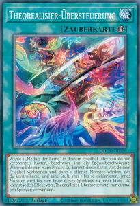 Wähle 1 „ Meditus der Reine “ in deinem Friedhof oder verbanne ihn ; beschwöre ihn als Spezialbeschwörung . Während deiner Main Phase : Du kannst diese Karte von deinem Friedhof verbannen , dann 1 offenes Monster wählen, das du kontrollierst , und eine Stufe von 1 bis 10 bestimmen ; seine Stufe wird bis zum Ende dieses Spielzugs zur bestimmten Stufe. Du kannst jeden Effekt von „Theorealisiere Overdrive“ nur einmal pro Spielzug verwenden .