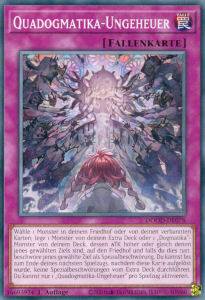 Wähle 1 Monster in deinem Friedhof oder verbanne es ; du kannst bis zum Ende deines nächsten Spielzugs keine Spezialbeschwörung vom Extra Deck durchführen , zusätzlich lege 1 „ Dogmatika “-Monster von deinem Deck oder 1 Monster von deinem Extra Deck mit gleicher oder höherer ATK auf den Friedhof und falls du dies tust, beschwöre das als Ziel gewählte Monster als Spezialbeschwörung. Du kannst nur 1 „Dogmatika-Ungeheuer“ pro Spielzug aktivieren .