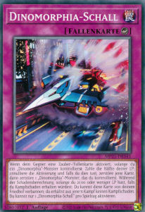 Wenn dein Gegner eine Zauber-/Fallenkarte aktiviert, solange du ein „Dinomorphia“-Monster kontrollierst: Zahle die Hälfte deiner LP; annulliere die Aktivierung und falls du dies tust, zerstöre die Karte, dann zerstöre 1 „Dinomorphia“-Monster, das du kontrollierst. Während der Schadensberechnung, solange du 2000 oder weniger LP hast, falls du Kampfschaden erhalten würdest: Du kannst diese Karte von deinem Friedhof verbannen; du erhältst aus dem Kampf keinen Kampfschaden. Du kannst nur 1 „Dinomorphia-Schall“ pro Spielzug aktivieren.