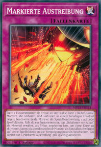 Biete 1 Fusionsmonster als Tribut an und wähle dann 2 Nichtfusions-Monster, die verbannt sind und/oder in einem beliebigen Friedhof liegen; beschwöre beide Monster als Spezialbeschwörung, 1 auf jede Spielfeldseite. Falls du ein Fusionsmonster, das „Gefallener von Albaz“ als Material erwähnt, als Tribut angeboten hast, um diese Karte zu aktivieren, kannst du stattdessen beide Monster als Spezialbeschwörung auf deine Spielfeldseite in die Verteidigungsposition beschwören. Du kannst nur 1 „Markierte Austreibung“ pro Spielzug aktivieren.