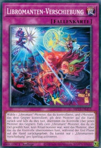 Wähle 1 „Libromant“-Monster, das du kontrollierst, und 1 Monster, das dein Gegner kontrolliert; gib dein Monster auf die Hand zurück und falls du dies tust, übernimm die Kontrolle über jenes Monster des Gegners. Falls dein „Libromant“-Monster, das du als Ziel gewählt hast, kein Ritualmonster war, wird das Monster, über das du die Kontrolle übernommen hast, während der End Phase auf die Hand zurückgegeben. Du kannst nur 1 „Libromanten-Verschiebung“ pro Spielzug aktivieren.
