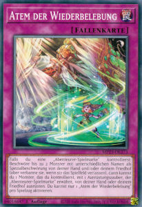 Falls du eine „Abenteurer-Spielmarke“ kontrollierst: Beschwöre bis zu 2 Monster mit unterschiedlichen Namen als Spezialbeschwörung von deiner Hand und/oder deinem Friedhof (aber verbanne sie, wenn sie das Spielfeld verlassen), dann kannst du 1 Monster, das du kontrollierst, mit 1 Ausrüstungszauber, der „Abenteurer-Spielmarke“ erwähnt, von deiner Hand oder deinem Friedhof ausrüsten. Du kannst nur 1 „Atem der Wiederbelebung“ pro Spielzug aktivieren.