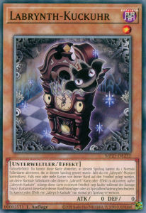 (Schnelleffekt): Du kannst diese Karte abwerfen; in diesem Spielzug kannst du 1 Normale Fallenkarte aktivieren, die in diesem Spielzug gesetzt wurde, falls du ein „Labrynth“-Monster kontrollierst. Falls eine oder mehr Karten von deiner Hand auf den Friedhof gelegt werden, um deine Normale Fallenkarte oder deine/n „Labrynth“-Karte oder -Effekt zu aktivieren, außer „Labrynth-Kuckuhr“, solange diese Karte in deinem Friedhof liegt (außer während des Damage Steps): Du kannst diese Karte deiner Hand hinzufügen oder als Spezialbeschwörung beschwören. Du kannst jeden Effekt von „Labrynth-Kuckuhr“ nur einmal pro Spielzug verwenden.