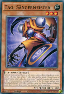 Falls diese Karte gegen ein Monster kämpft, können beide durch jenen Kampf nicht zerstört werden. Falls diese Karte auf den Friedhof gelegt wird: Du kannst 1 Illusion-Monster in deinem Friedhof wählen, außer „Tao, Sängermeister“; beschwöre es als Spezialbeschwörung in die Verteidigungsposition, zusätzlich kannst du für den Rest dieses Spielzugs keine Spezialbeschwörungen vom Friedhof durchführen, außer von Illusion-Monstern. Du kannst diesen Effekt von „Tao, Sängermeister“ nur einmal pro Spielzug verwenden.