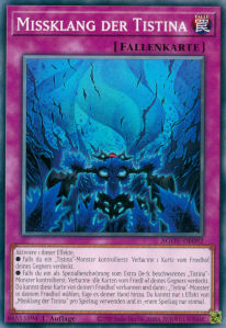 Du kannst diese Karte von deinem Friedhof verbannen und dann 1 „Tistina“-Monster in deinem Friedhof wählen; füge es deiner Hand hinzu. Du kannst nur 1 Effekt von „Missklang der Tistina“ pro Spielzug verwenden und in jenem Spielzug nur einmal.