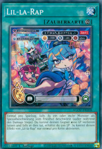 Einmal pro Spielzug, falls du ein oder mehr Monster als Spezialbeschwörung vom Friedhof beschwörst (außer während des Damage Steps): Du kannst deinen Gegner 1000 LP verlieren lassen und falls er dies tut, erhältst du 500 LP. Du kannst diesen Effekt von „Lil-la-Rap“ nur einmal pro Kette aktivieren.