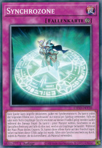 Kein Spieler kann Angriffe deklarieren, außer mit Synchromonstern. Du kannst jeden der folgenden Effekte von „Synchrozone“ nur einmal pro Spielzug verwenden. Falls ein oder mehr Nicht-Empfänger-Synchromonster auf deinen Friedhof gelegt werden (außer während des Damage Steps): Du kannst 1 jener Monster wählen; beschwöre es als Spezialbeschwörung und falls du dies tust, wird es als Empfänger behandelt. Während der Main Phase deines Gegners: Du kannst diese offene Karte auf den Friedhof legen; sofort nachdem dieser Effekt aufgelöst wurde, führe eine Synchrobeschwörung durch und verwende dafür Monster, die du kontrollierst, als Material.