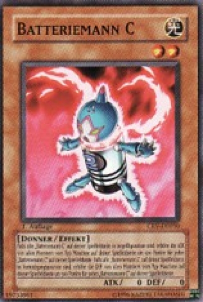 Falls alle „Batteriemann C“ auf deiner Spielfeldseite in Angriffsposition sind, erhöhe die ATK von allen Monstern vonTypMaschine auf deiner Spielfeldseite um 500 Punkte für jeden „Batteriemann C“ auf deiner Spielfeldseite. Falls alle „Batteriemann C“ auf deiner Spielfeldseite in Verteidigungsposition sind, erhöhe die DEF von allen Monstern vonTypMaschine auf deiner Spielfeldseite um 500 Punkte für jeden „Batteriemann C“ auf deiner Spielfeldseite.