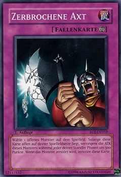 Wähle 1 offenes Monster auf dem Spielfeld. Solange diese Karte offen auf deiner Spielfeldseite liegt, verringere die ATK dieses Monsters während jeder deiner Standby Phasen um 500 Punkte. Wenn das Monster zerstört wird, zerstöre diese Karte.